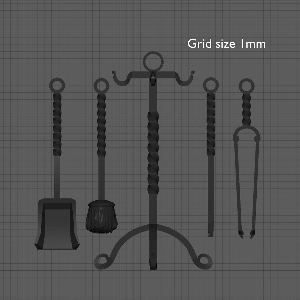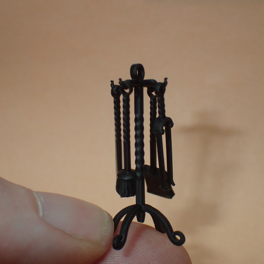 The set was digitally modelled by me with reference to genuine antique fire irons, then 3D printed in high detail resin and hand finished.